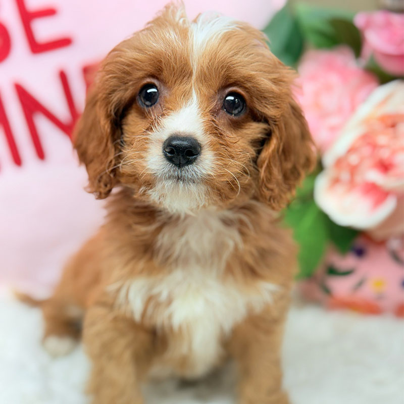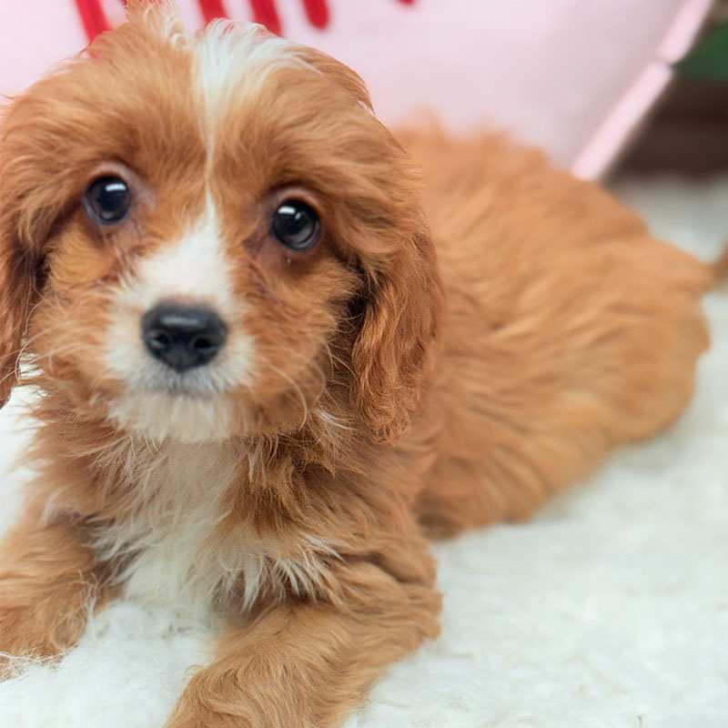 Buddy is the only boy in this litter! He has quite the patience growing up with 5 sisters LOL! Buddy’s coat is a gorgeous ruby red with white and awesome curls! He is such a PRECIOUS SweetHeart! Buddy would definitely would be the perfect addition to any family. Don’t miss the opportunity to bring home this delightful gorgeous adorable CUTIE PIE Cavapoo puppy! I’m well socialized and ready to fit into your family! I would love to fill your home with all of my puppy love! I am microchipped and I am up to date on vaccinations and dewormings and will come with a one year genetic health guarantee! Call or text anytime to make me the newest addition to your family and get ready to spend a lifetime of tail wagging fun!