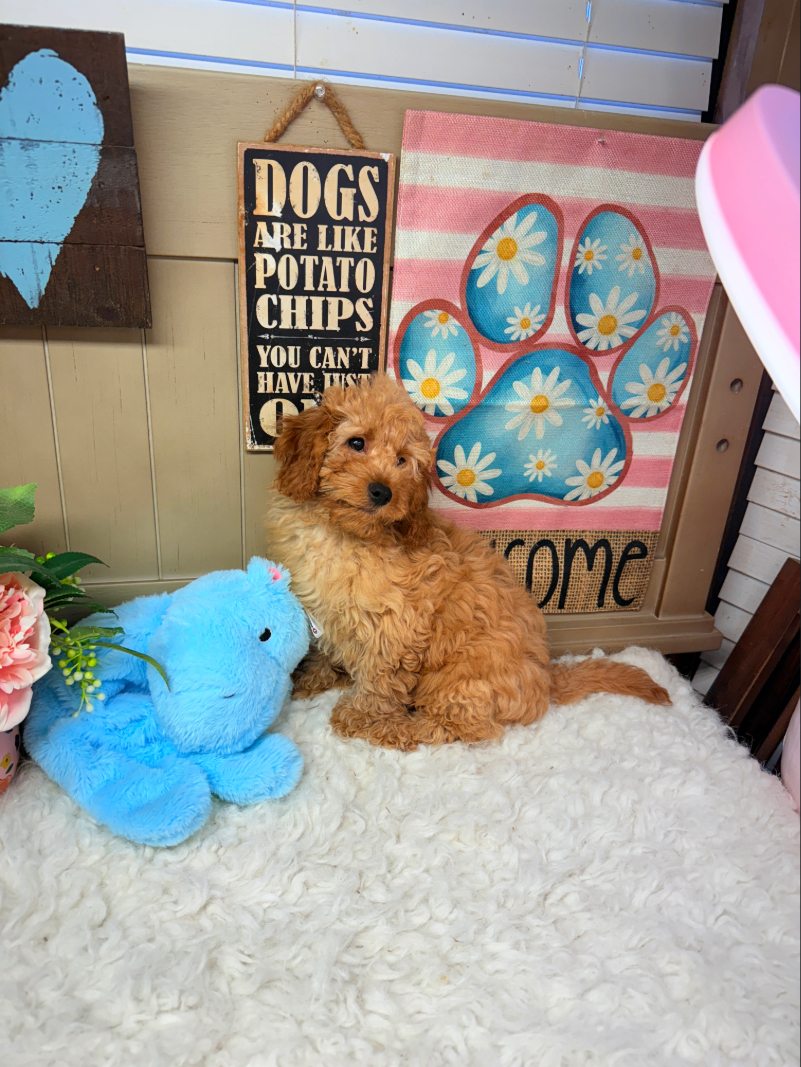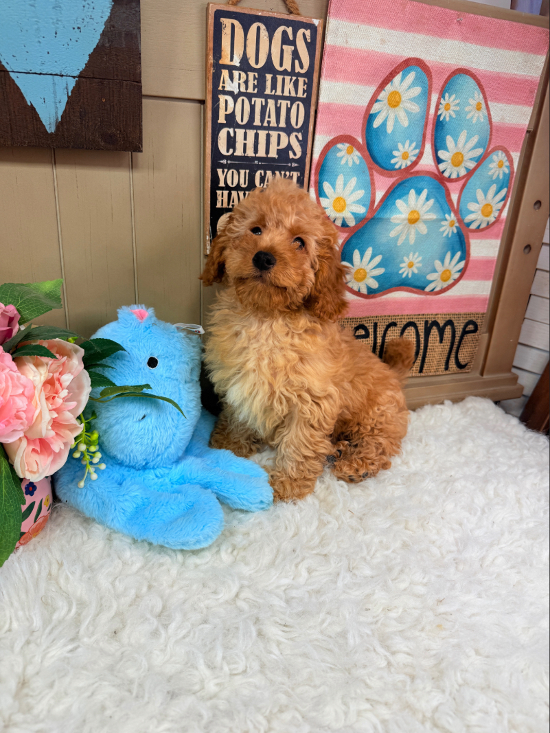 - This adorable ruby Cavapoo puppy features a beautiful honey apricot wavy coat and an irresistible teddy bear face. Cavapoos are known for their affectionate personality, intelligence, and low-shedding coats, making them wonderful companions for families, couples, and retirees. Raised with love and socialization at Puppies on the Gulf, this puppy is ready to bring joy to a lucky home.