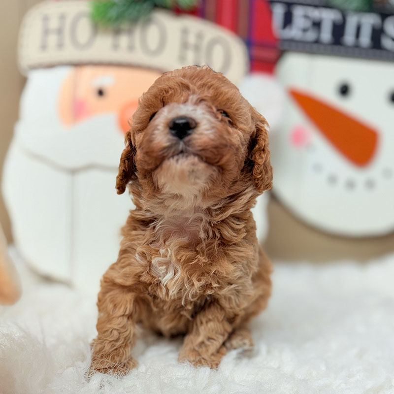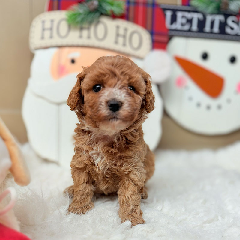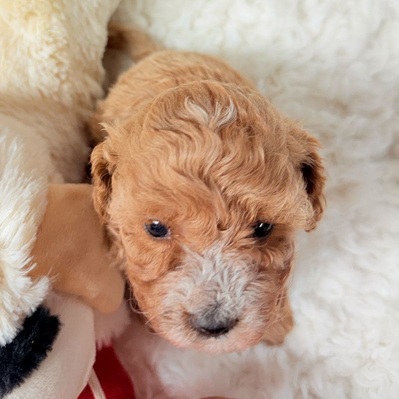 Puppy Bio: Clarice is a gorgeous Golden Blonde with White Cavapoochon also known as a Forever Puppy!. She has beautiful markings with the white in just the right places and has the wavy curls that are so dang cute! She is perfectly content and such a is a Happy Girl that definitely enjoys his playtime with her littermates and loves her cuddle time with her Mom and siblings!. Clarice is from our Cavachon Mom Abby 16 lbs and Toy Poodle Daddy Toby that is 10 lbs Abby’s puppies usually average anywhere from 6 to 15 lbs. And they are always adorable!!! They are super sweet and FAMILY RAISED They will have had their puppy shots, wormings and they come with a 1 year health guarantee and LIFETIME SUPPORT and will have been put through our Smart Puppy Program! Let us help you with setting up delivery options if you don’t live close Make sure you check us out on our Facebook Page and see why our Cavapoochon puppies are the BEST and you can see for yourself why they are also called Forever Puppies