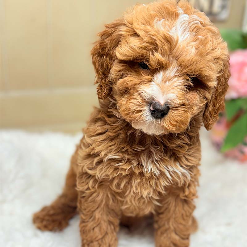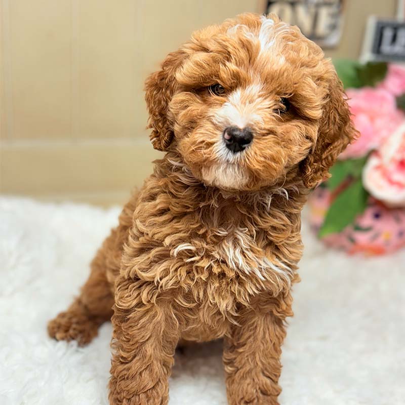 Loki is such a Forever Puppy with his perfect Golden Curls and his adorable White placed so cutefully on his little mug and chest!! Super sweet and cute making a perfect addition to any family with that adorable TEDDY BEAR FACE!