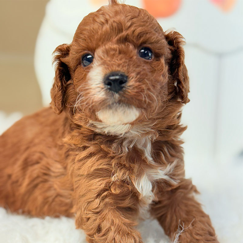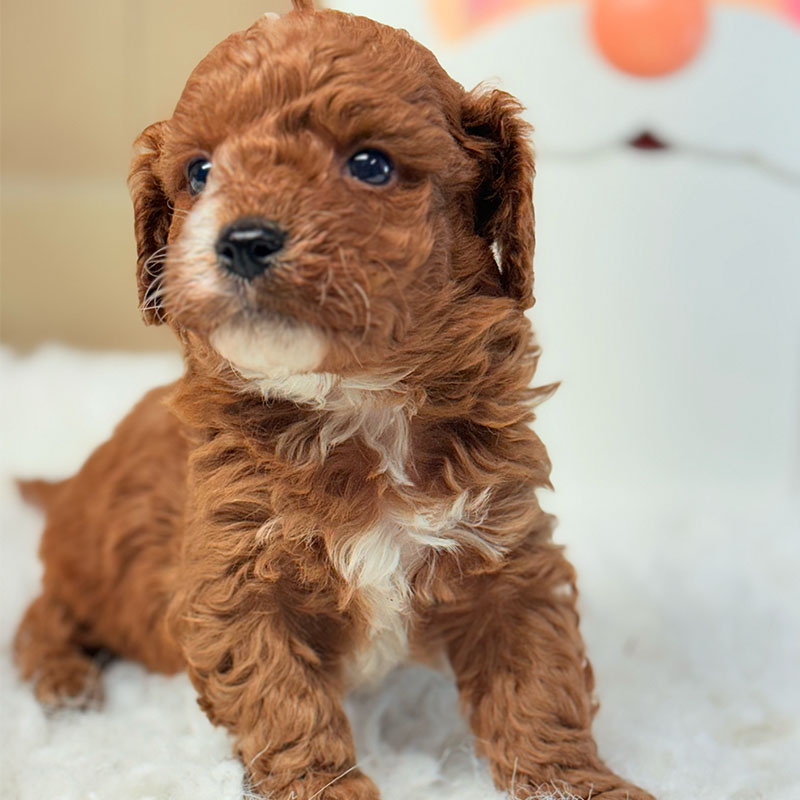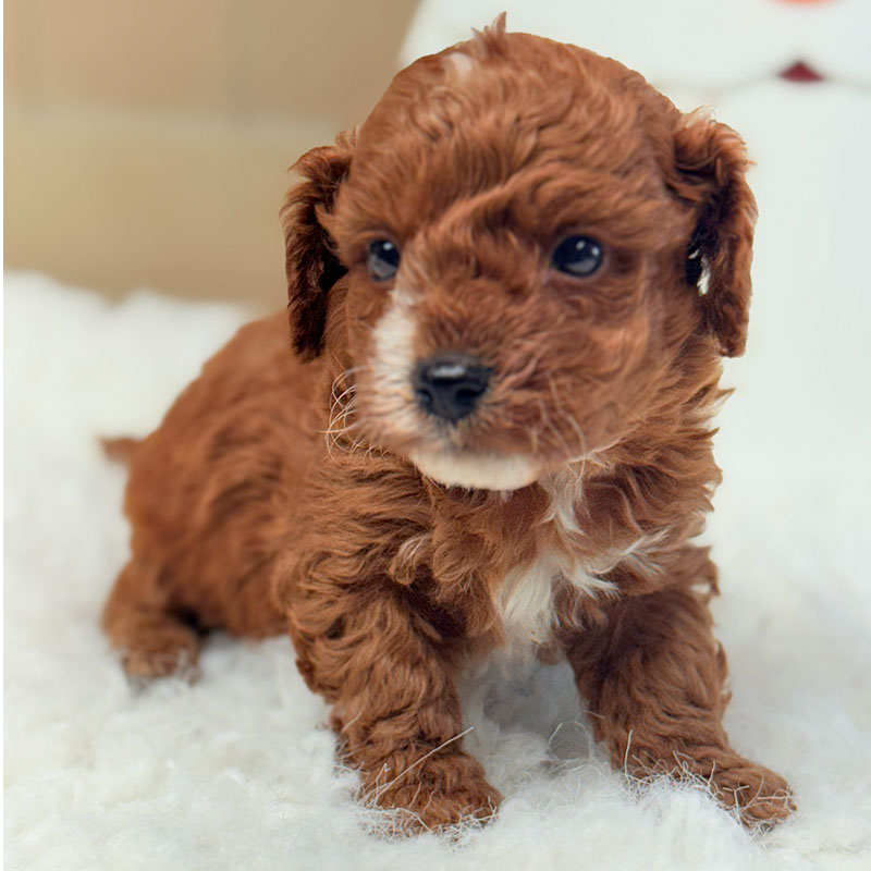 Puppy Bio: Rudolph is so delightful and playful and such and a handsome boy! He is a beautiful Ruby Red and he is truly joyful making anyones frown turn upside down! Rudolph is from our Cavachon Mom Abby 16 lbs and Toy Poodle Daddy Toby that is 10 lbs Abby’s puppies usually average anywhere from 6 to 15 lbs. And they are always adorable!!!