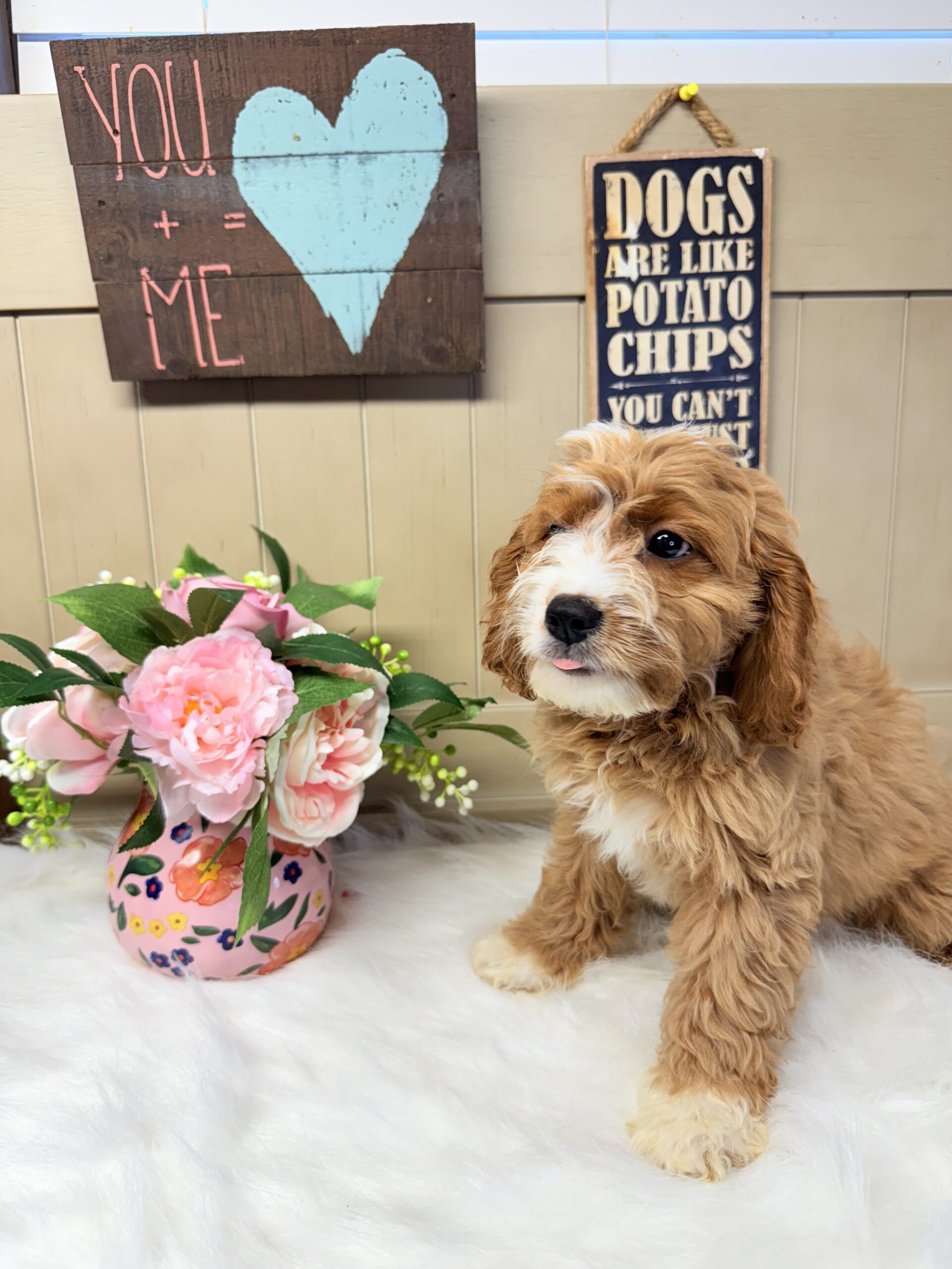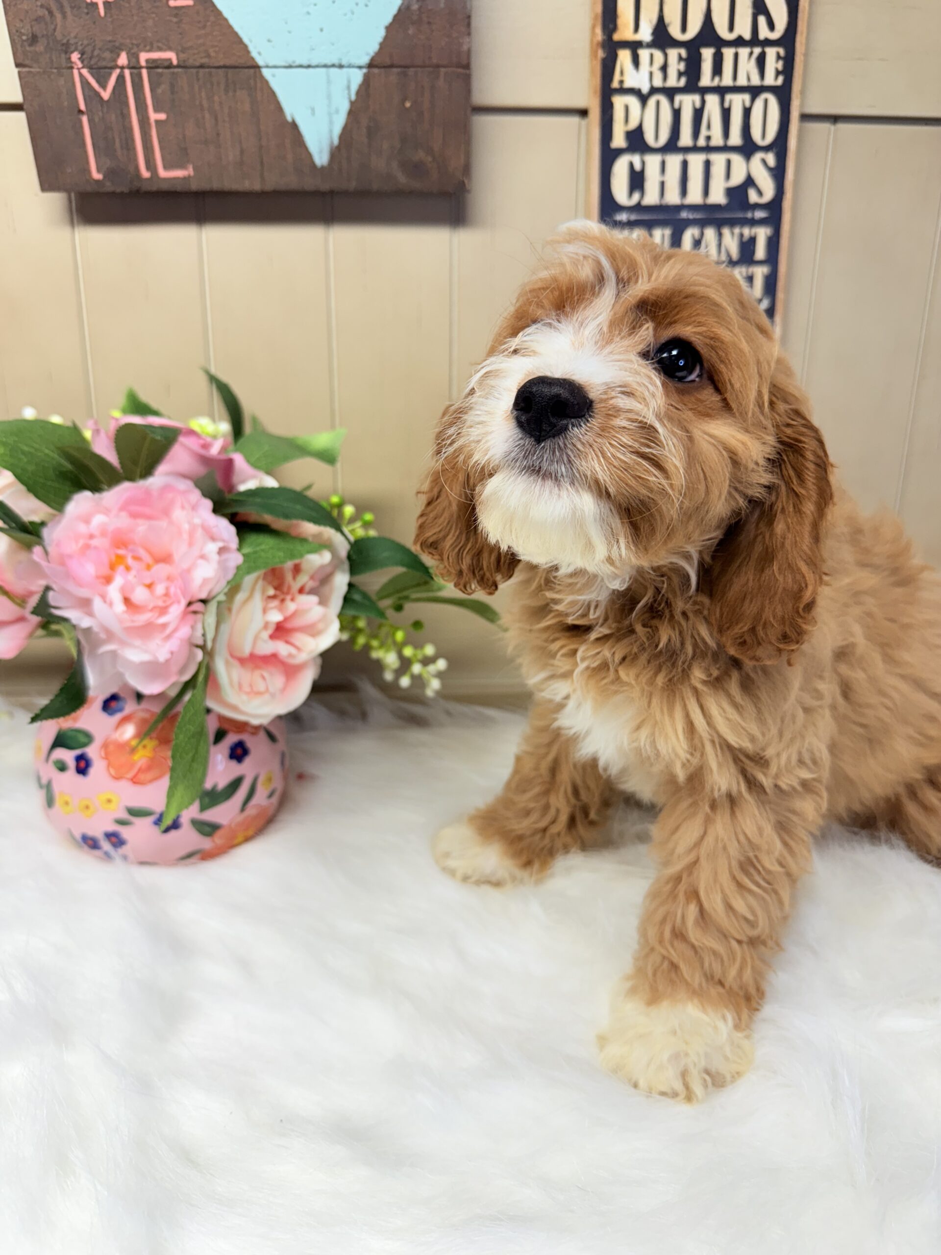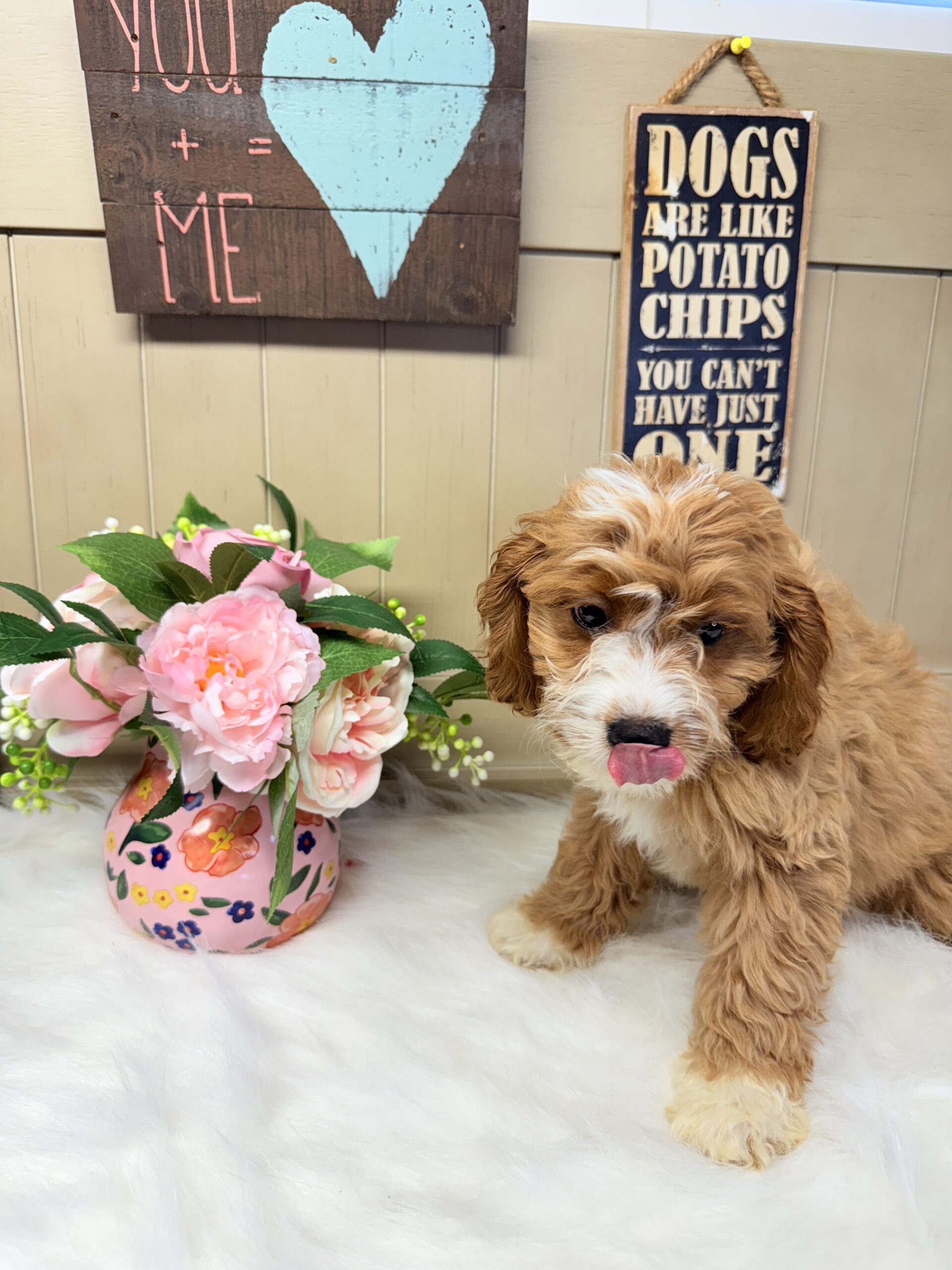 Olivia is such a sweetie pie Her coloring and coat are just stunning! She is from our Cavapoo Mom Sweetie 12 lbs and Toy Poodle Daddy that is 14 lbs
